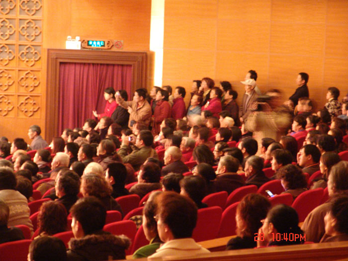 上海戏迷个个是“戏精”,说起角色的唱腔、表演、台步等都是头头是道。他们的专业、热情与疯狂让舞台上这些第一次亮想上海滩的学生们激动不已。同学们一个唱腔、一个身手都引起戏迷的叫好与掌声,热情绝对可比当下年轻的“追星族”。家住浦东的沈奶奶84岁,是郭茜云的“超级粉丝”,眼不花耳不聋,精神十足一个劲说:嘎个小囡了不得、了不得!明后天我还要来看伊。还有不少大伯大妈拉住记者抢着告诉,如数家珍般地将同学们的表演一一说来;演出尚未结束,戏迷中大多已起立在剧场两边做好准备,一等谢幕就涌向舞台前方。他们叫喊着郭倩云的名字,用手有节奏地拍打着舞台,同学们谢幕三次都挡不住“戏迷”们的热情。在剧场后门出口处更是聚集了不少疯狂戏迷,他们顶着寒风,等着同学们出来。郑晓一现身,就被戏迷们围住签名,甚至都上了回宾馆的车,还有戏迷追到车上索求签名。