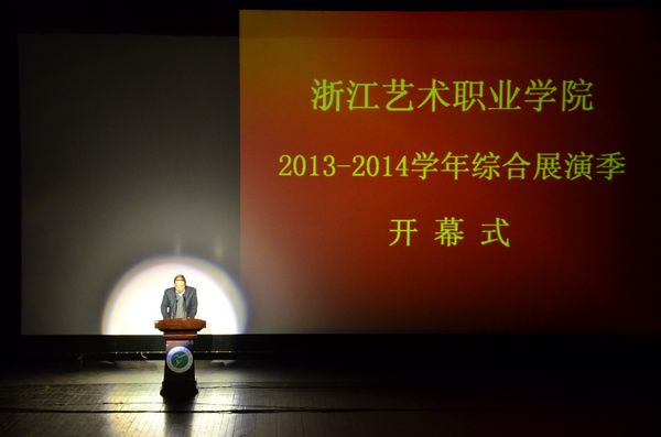 林国荣致辞。他说,本次综合展演季以“强化实践教学,提升实践能力”为主题,所参与的表演与非表演专业相互交融,相得益彰。在接下去一个多月的时间里,浙艺学子将带来14台演出,7个展览,这样的长度与覆盖面为各个专业的同学提供了广阔的舞台。他指出,展演的形式有所创新,让我院实验剧团与每个系结合,形成院团式的模板,使学生在高度仿真中身临其境,感受艺术院团的创作与生产过程;努力创新合作平台,让院团合作给学生更多的实践机会,通过校外的专家指导、校外的文化单位合作,让综合展演更接地气,与文化产业紧密结合;让重点教学项目建设中融入结果的展示;综合展演走出校门,将实践教学与服务社会基层紧密结合起来。林国荣说,综合展演季已走过了十个年头,是学院别具特色的平台,逐步成为了教学过程中重要的组成部分,成为学院艺术人才培养的重要的体现,也是学院与社会,与用人单位沟通交流的重要平台。