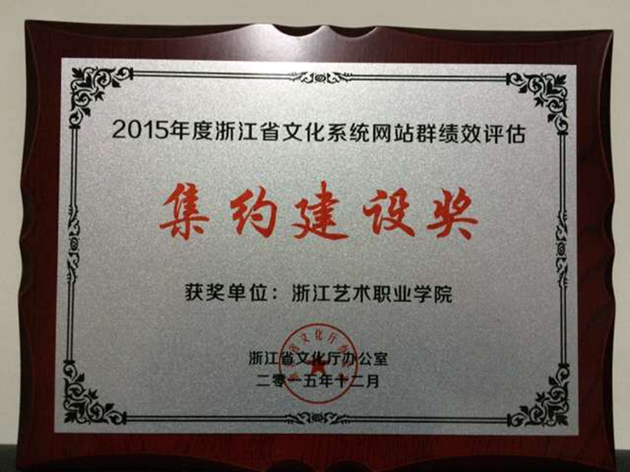 我院荣获2015年度浙江省文化系统网站群绩效评估集约建设奖