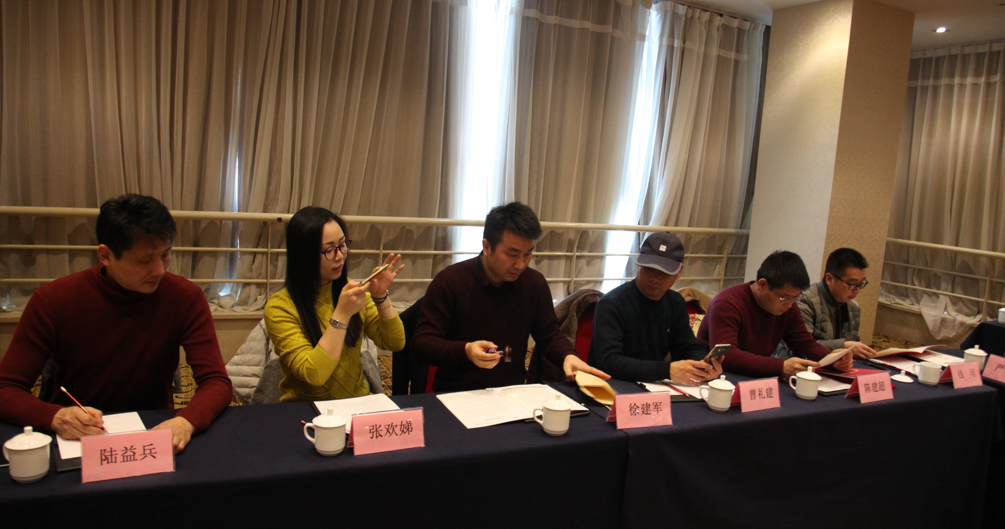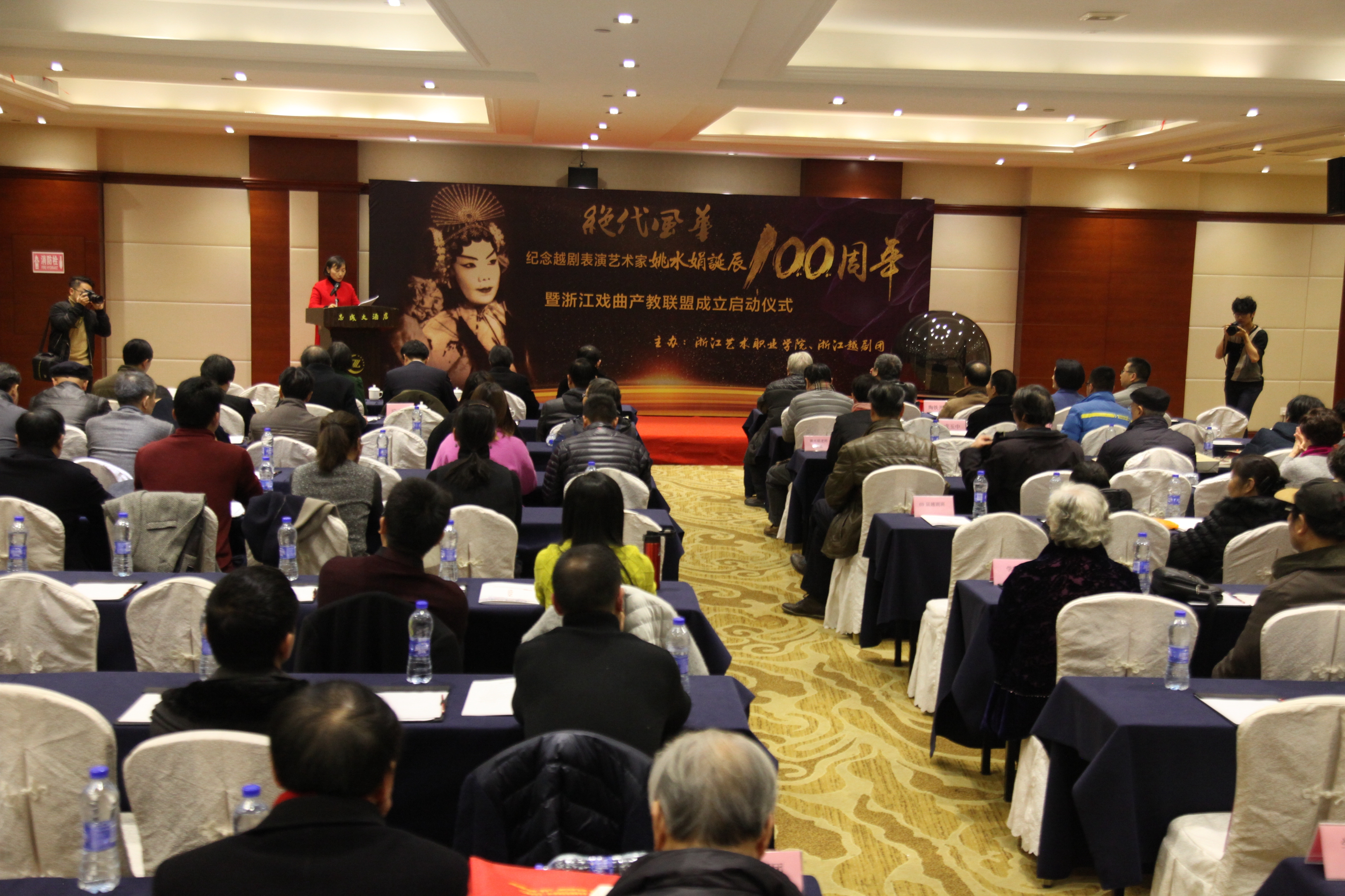 刁玉泉、朱海闵、陶铁斧为浙江戏曲产教联盟成员单位赠送了《姚水娟越剧艺术文选汇编》。浙艺副院长沈恒、嵊州越剧艺术学校校长钱江南、浙江越剧团团长陶铁斧、浙江昆剧团团长周鸣岐、浙江小百花越剧团副团长刘建宽、杭州红星剧院总经理戴志清等为浙江戏曲产教联盟按下启动按钮,标志着联盟的正式成立。
