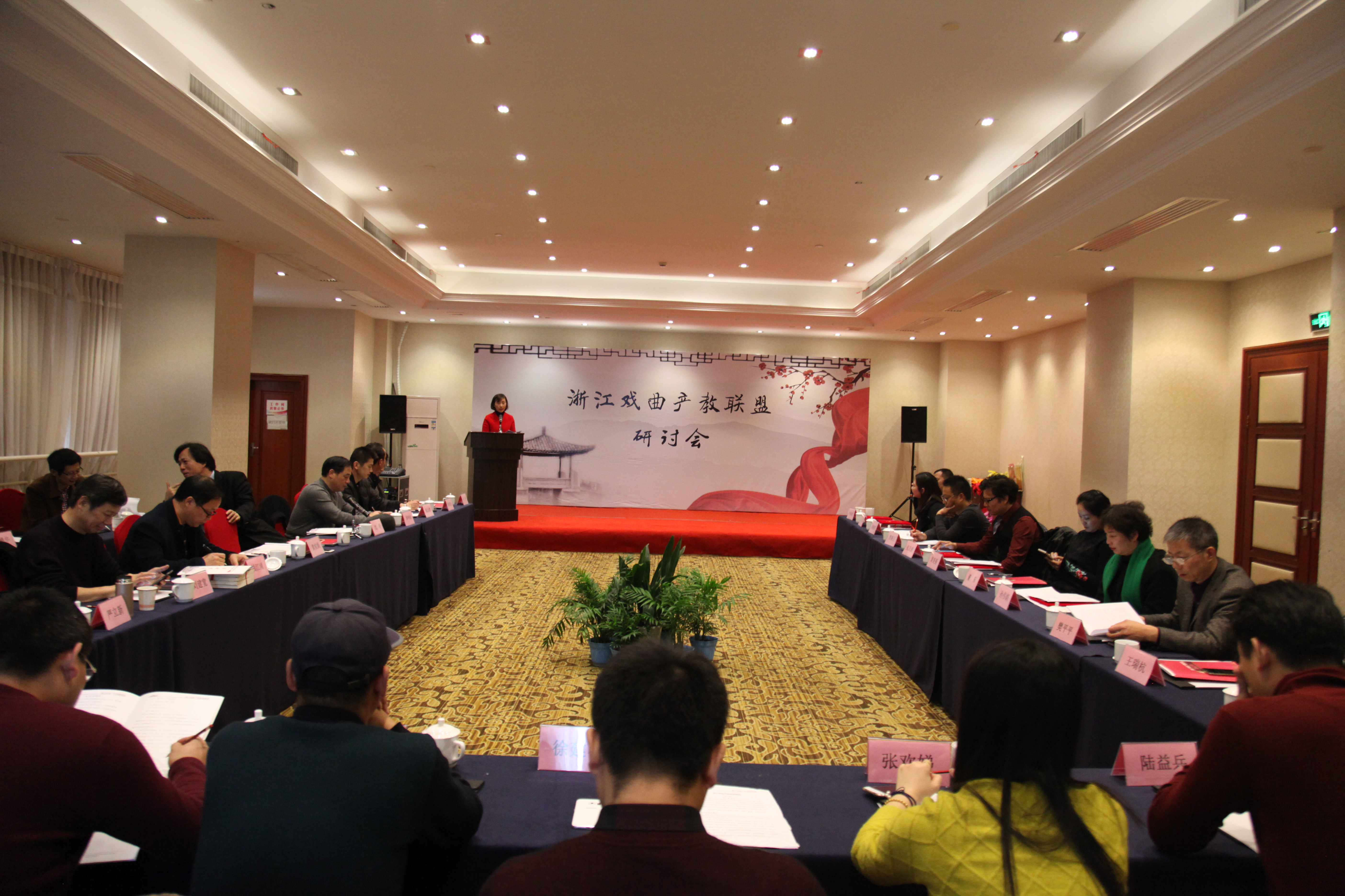 启动仪式后,浙江戏曲产教联盟研讨会举行。研讨会主题为“主动适应戏曲传承发展新要求,创新搭建戏曲人才培养教育、校团(企)产教融合机制”,来自全省各地的艺术院校代表、剧团(院)代表、剧场及产业单位代表齐聚一堂,共商大计。会上,宣读了联盟委员单位及委员名单,讨论审议了联盟章程,共同签署了浙江戏曲产教联盟协议。