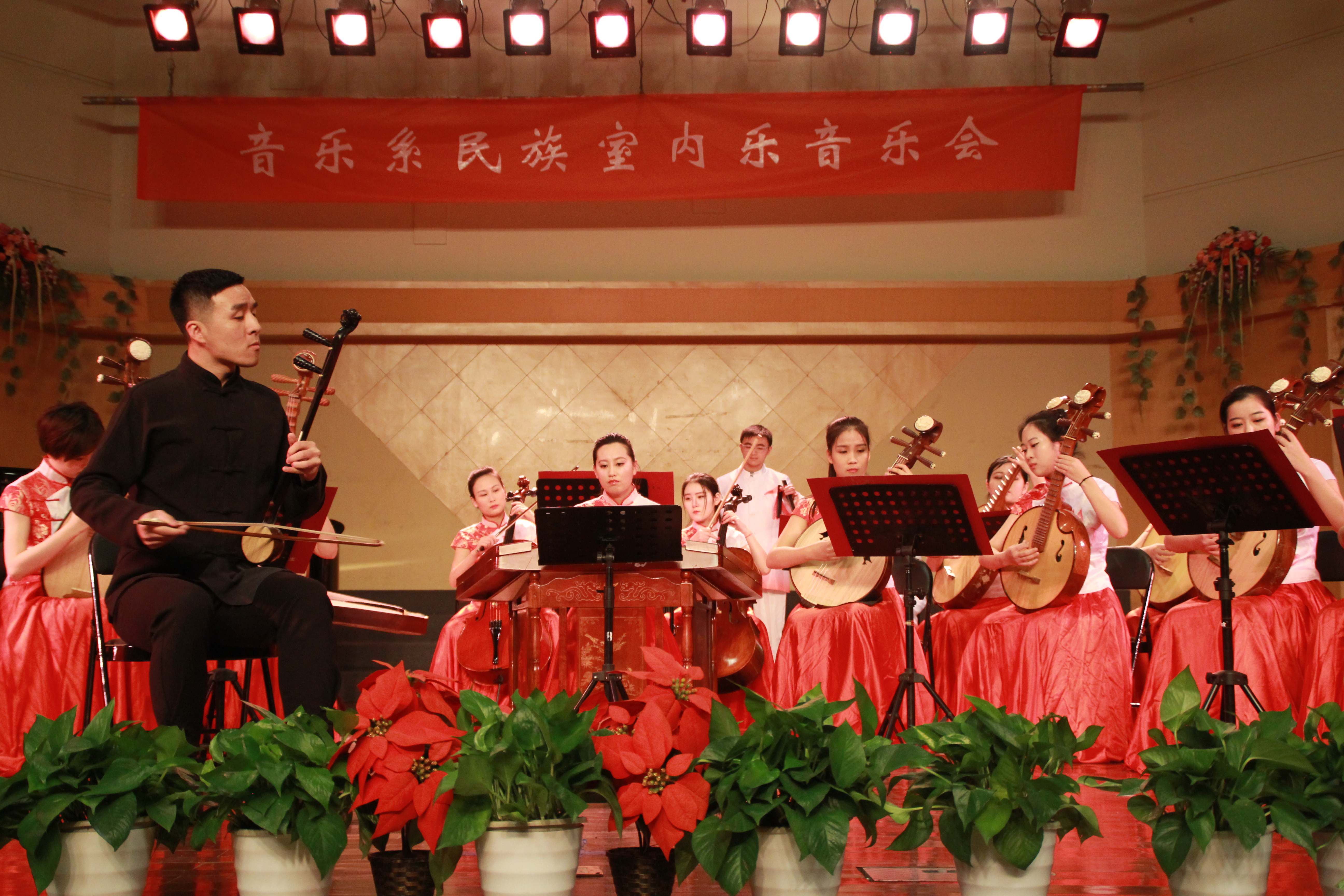 演出者之一应伟鑫说:“今天这场民族室内乐音乐会成功演出,离不开我们老师同学的共同努力,这几天为了准备这场音乐会,大家都很辛苦,我们台下不断练习,在台上也不断调整,在著名作曲家、指挥家周煜国老师的指导下,不断克服自己的不足,一遍遍彩排,最终给大家展示了一场高规格的音乐会。一次次的排练与演出,对于我来说是在不断的成长,也学会了怎么样能更好地与乐队配合,学到了更多的专业知识”。