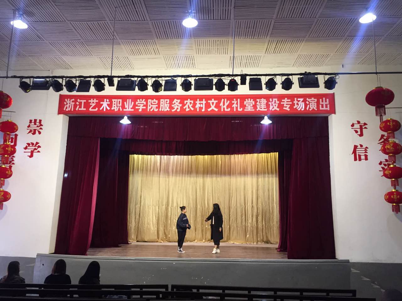 25日,由戏剧系、音乐系师生组成的演出队来到西河村文化礼堂。西河村是浙艺“双万结对,共建文明”的共建单位。浙艺演出队的专场演出受到当地群众的热烈欢迎。当天适逢西河村党支部换届选举结束,当晚松阳县望松街道、西河村委等领导和数百村民兴致勃勃到场观看,这场精彩演出也成为新一届村委班子致力西河村精神文明建设、丰富村民文化生活的序幕。
