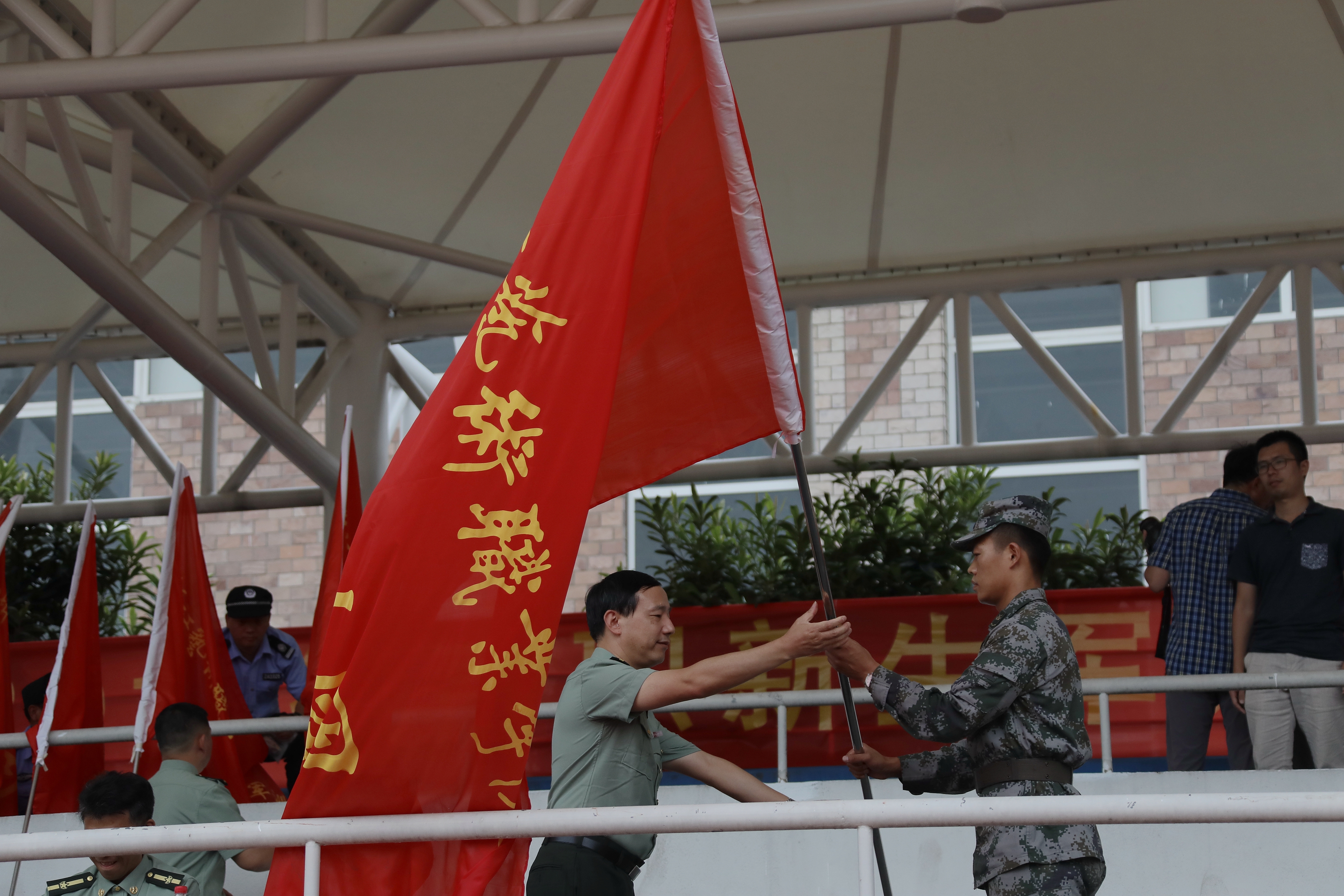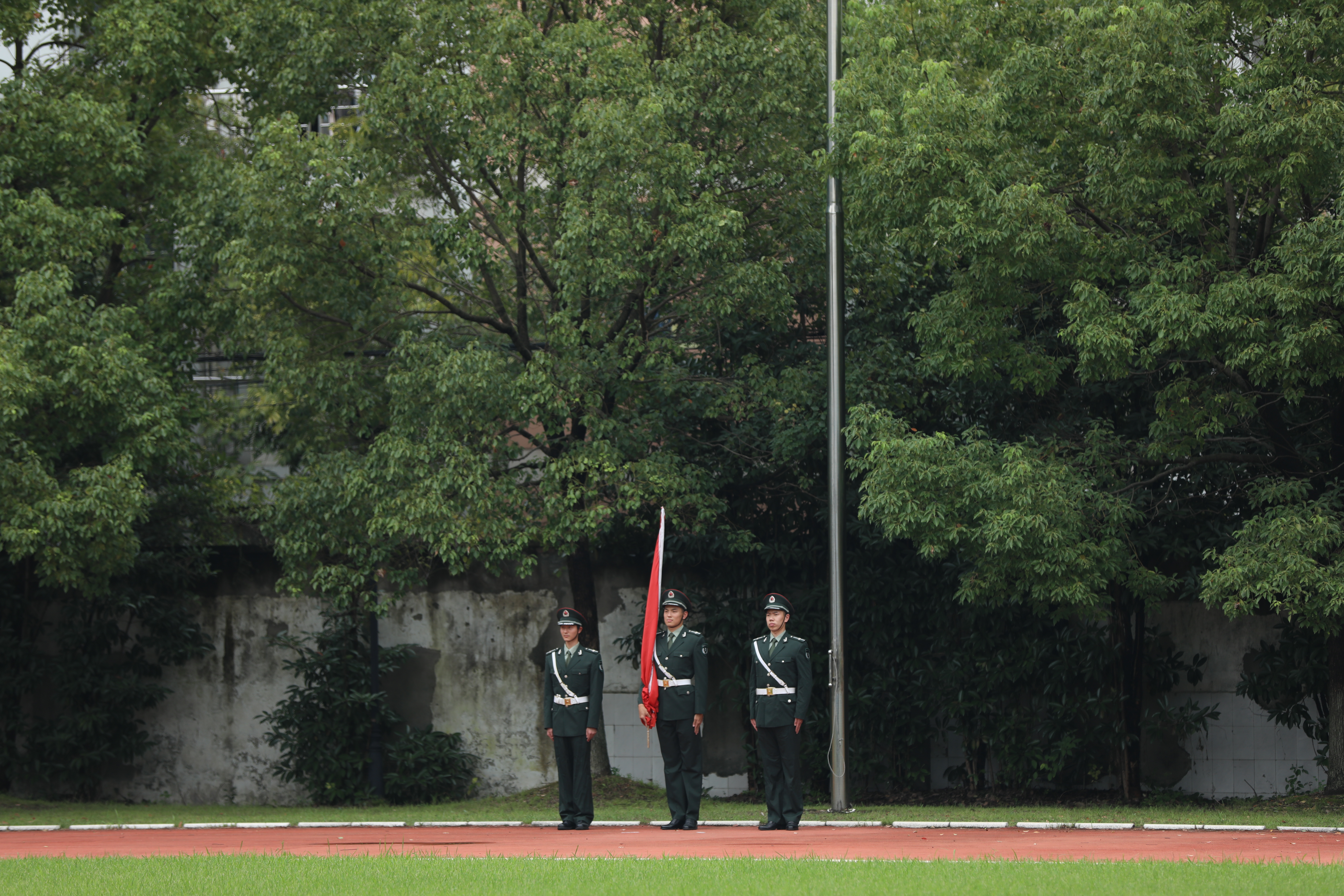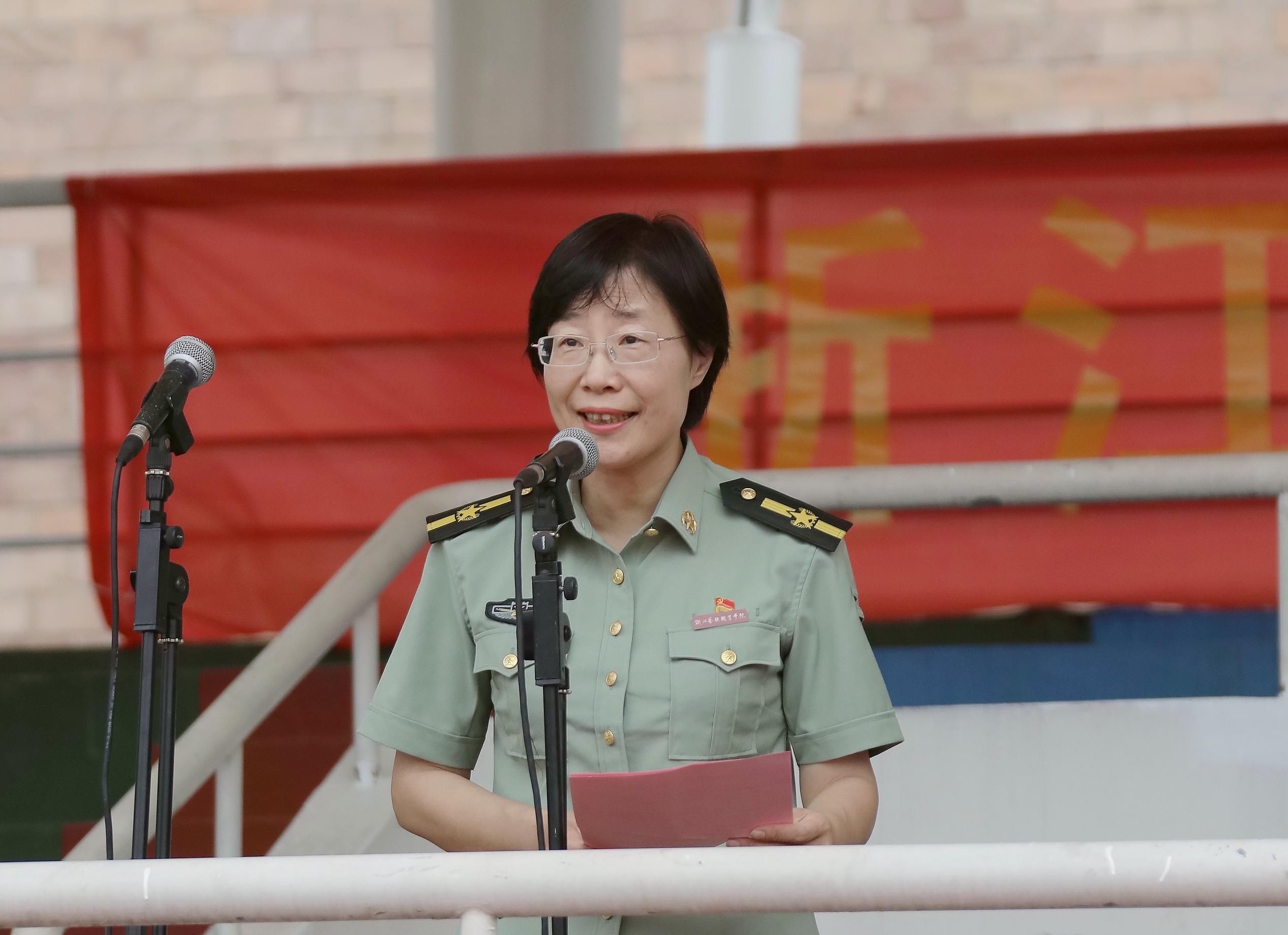 陈贝贝在仪式上发言。他希望全体教官牢记使命、不负重托,切实担起组训施教的重担。他也希望同学们端正思想、认真参训,积极投身紧张有序的军训生活。愿军训团全体同仁齐心协力抓军训,凝心聚力出成绩,确保军训全程安全顺利。