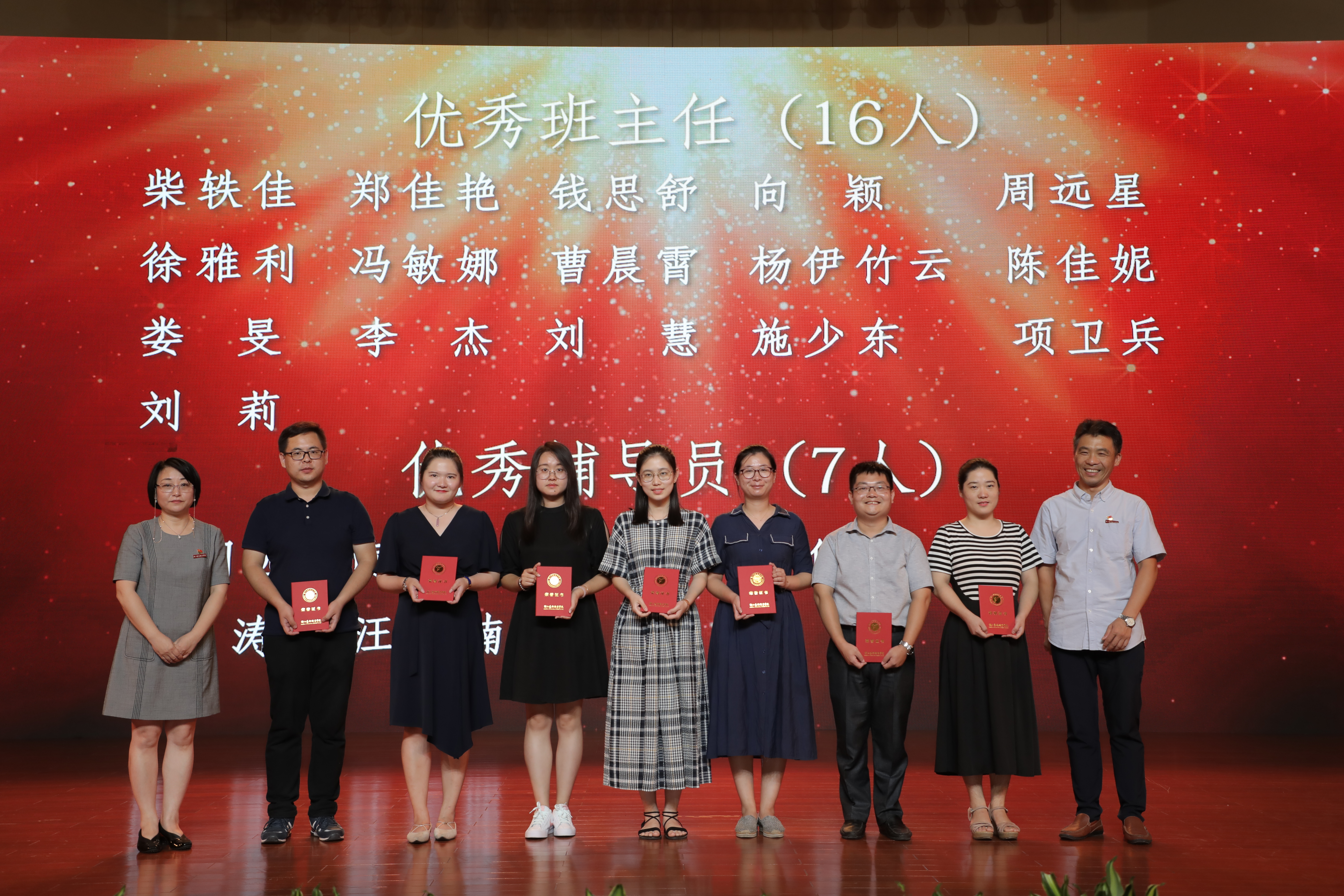 大会表彰了过去一学年学校教学、科研、人才培养、管理服务等方面工作取得突出成绩的先进集体和个人。党委副书记夏开堂主持大会,校领导为先进集体和个人颁奖。音乐系等6个部门获评2018年度校级先进集体,刘发奎等7人获评2018年度优秀干部,荆芳等22人获评2018年度优秀教师,傅伟兴等21人获评2018年度优秀教育工作者,柴轶佳等16人获评2018年度优秀班主任,王园园等6人获评2018年度优秀辅导员,张晓娟等10人获评2018年度校课堂教学优秀奖。大会还宣读了在学校重大比赛中获奖的团队和指导教师,及2018年度学校就业先进集体、先进个人,通报表彰了获得厅以上优秀团队和个人奖项。