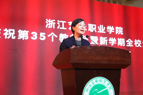 党委副书记、院长黄杭娟讲话。她向全体教职员工致以节日问候,祝贺获得表彰奖励的的先进集体和优秀个人,对2019年上半年学校工作进行了回顾,下半年主要工作进行了布置。