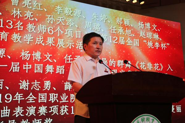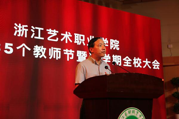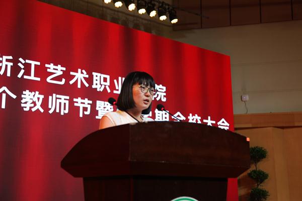 朱海闵结合即将开展的“不忘初心、牢记使命”主题教育,以“新时代”为关键词,对全体教职工提出了新期待新要求:要充分认识新时代职业教育发展的新机遇,准确把握新时代学校的历史使命和目标任务,大力培养新时代浙艺名师、能师和优秀教师团队。她强调,学校要完善“双师型”队伍建设机制,打造素质卓越的教师团队;健全师德养成长效机制,打造作风优良的教师团队;落实尊师重教的政策措施,打造幸福和谐的教师团队。朱海闵最后表示,教育事业崇高而伟大,教师职业光荣而神圣!做老师要执着于教书育人,有热爱教育的定力、淡泊名利的坚守。希望大家牢记习总书记嘱托,以高度的责任感和使命感,恪尽职守、努力工作,为艺术教育的繁荣发展、为学校的光明前景不懈奋斗,砥砺前行。