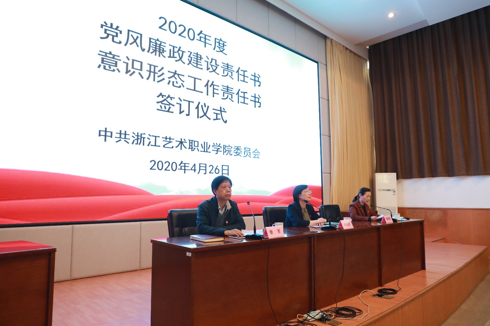 会上,朱海闵与校党委班子成员、校党委班子成员与分管部门负责人分别签订《2020年度党风廉政建设责任书》《2020年意识形态工作责任书》。