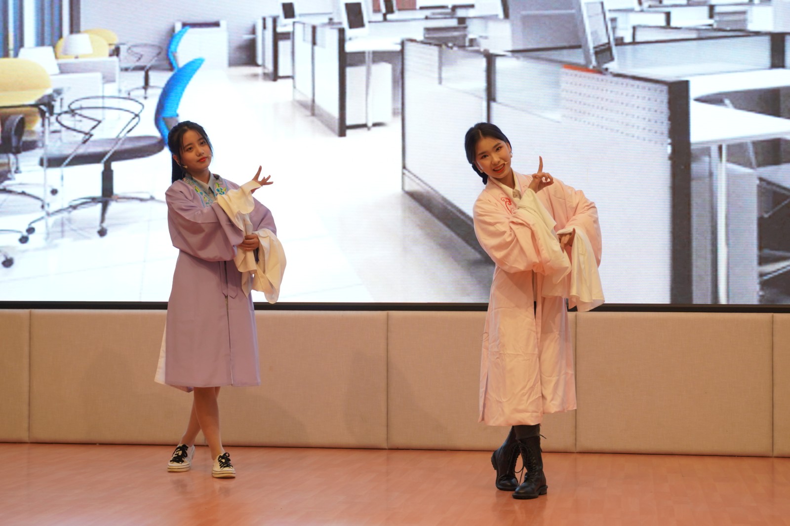 决赛现场,来自浙江大学、浙江工业大学、浙江工商大学、浙江商业职业技术学院、衢州职业技术学院等兄弟院校相关专业老师、杭州绘自传网络科技有限公司、 筹帷资本等企业的双创导师及我校学工部、教务处、科研处、社会科学部主要负责人担任评委。在职业规划类赛场,选手们通过主题陈述、职业体验感悟和现场答辩多角度进行自身及行业环境全方位分析,论述职业生涯规划全路径。展示风格各异,形式多样,给评委们留下了深刻的印象。创意创业类参赛选手则通过路演的方式阐述项目的创新点、市场前景、商业模式、发展战略、团队架构及社会价值,更有项目成员带来了商品实物,邀请评委专家们现场品鉴。学术作品类项目通过专家盲审的形式决出成绩。最终,来自我校文化管理系基层乡村文化员吴临筱和来自影视技术系的《云上丝路——鲸鱼影视文化传媒》项目分别斩获AB类一等奖。