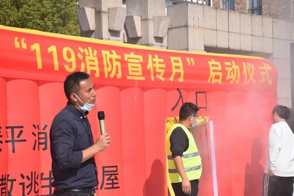 消防宣传员详细介绍了手提式干粉灭火器的使用方法,并做现场演示:拔出插销,按下把手,在距火源1.5至2米的安全距离内,瞄准火源根部,喷出粉尘。