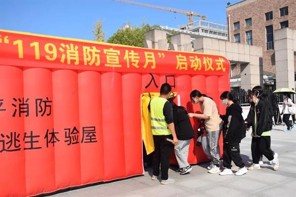 在演练现场,先后开展消防安全常识讲解、逃生屋体验、学习灭火器的使用等环节,使戏影学子真实体验灭火逃生和火灾处置流程。