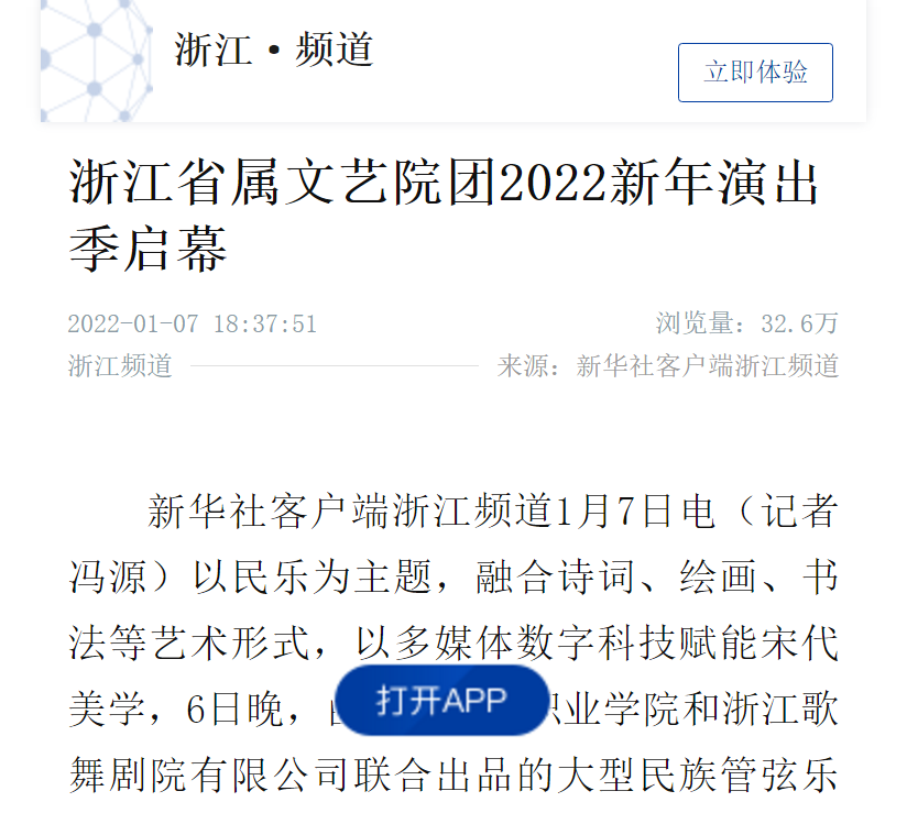 新华社客户端浙江频道:浙江省属文艺院团2022新年演出季启幕