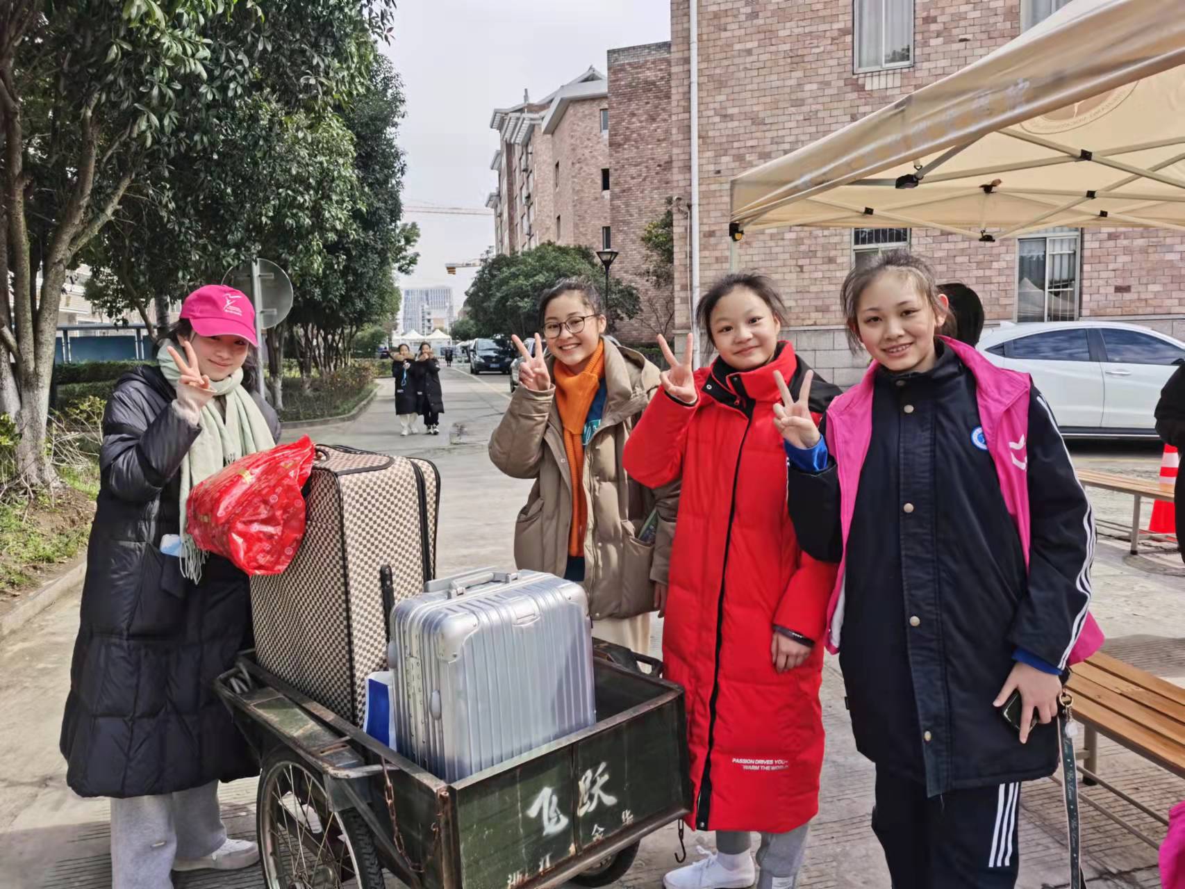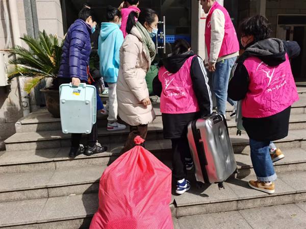 二月杭州的早晨,寒意未减半分。报到当天,戏曲学院副书记、辅导员、班主任们,早校门口、公寓楼前守候,等候学子归来。来自戏曲学院各班的志愿者们,热情洋溢,笑容满面,老师们带领下,来回穿梭于校门与宿舍,帮助同学们搬运行李、整理内务,让同学们第一时间感受到回家的温暖。