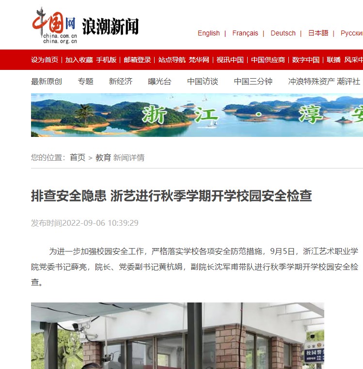 中国网浪潮新闻:排查安全隐患 浙艺进行秋季学期开学校园安全检查