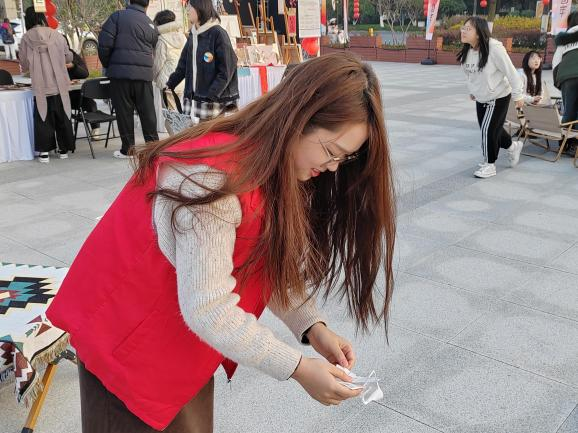 活动现场特邀自然造物、田博匠新、文博公司等非遗企业参与,摊位上非遗手工艺品琳琅满目,引得不少老师、同学驻足观赏。