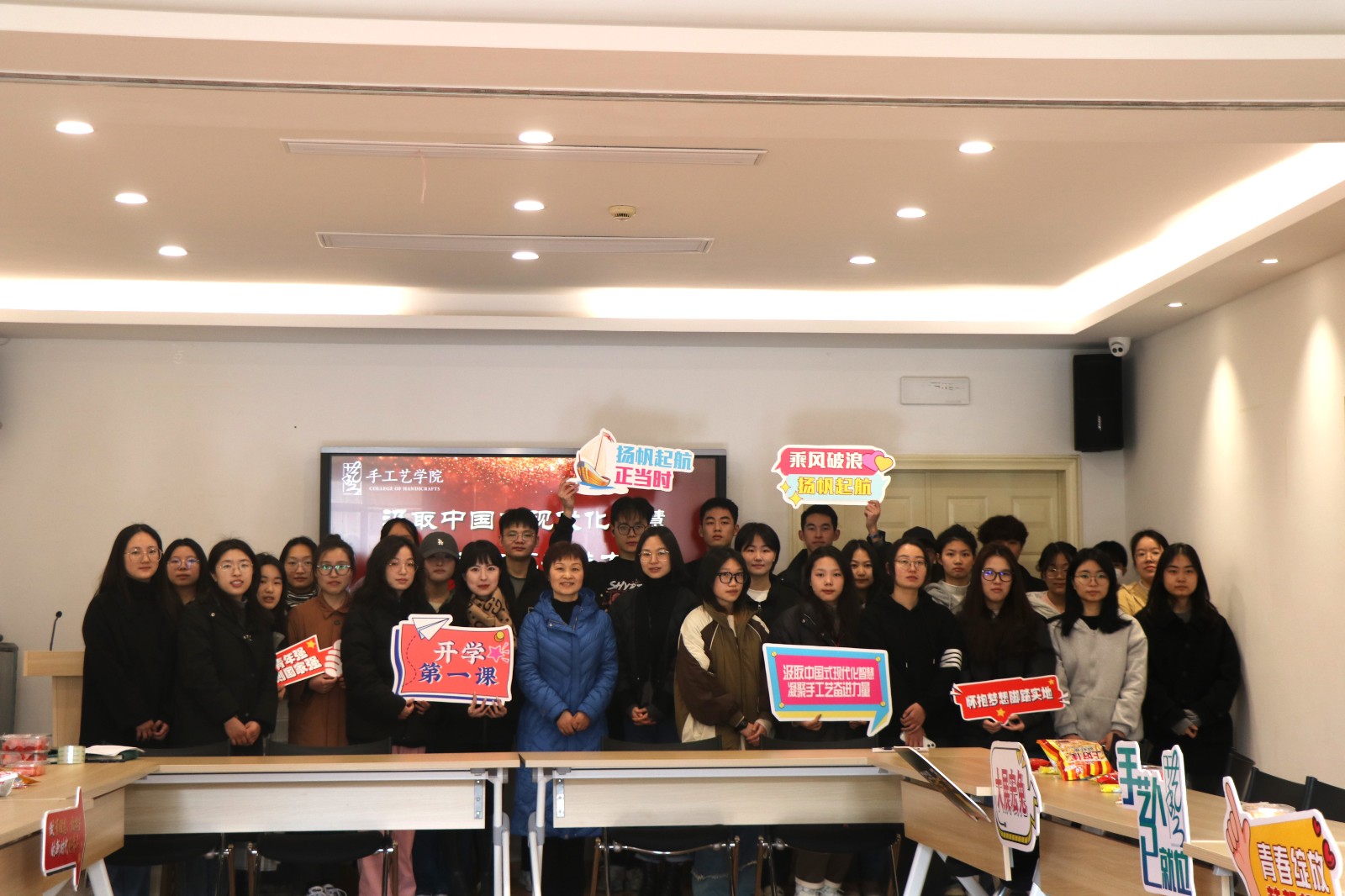 扬帆奋进正当时,为深入贯彻党的教育方针,激励手工艺师生振奋精神,营造锐意进取、积极向上、温馨愉快的浓厚氛围,手工艺学院开展 “汲取中国式现代化智慧·凝聚手工艺奋进力量”为主题的“开学第一课”系列活动,激励手工艺青年学子学思贯通、知信行统一,以崭新的奋进面貌迎接新学期的到来。