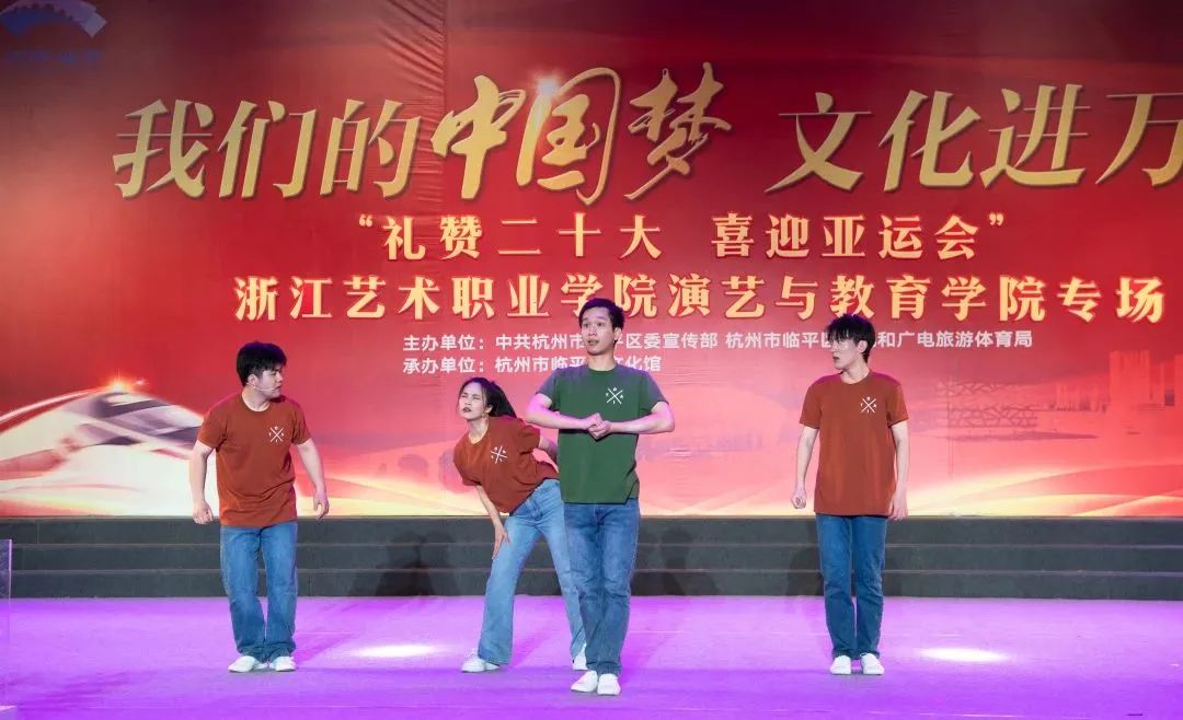 集体舞《等你来》是亚运会志愿者主题曲,表达了艺术学子为亚运会贡献一份青春力量的心愿。演出现场高潮迭起、喝彩不断,同学们以精彩表现赢得了观众们的赞扬与认可。