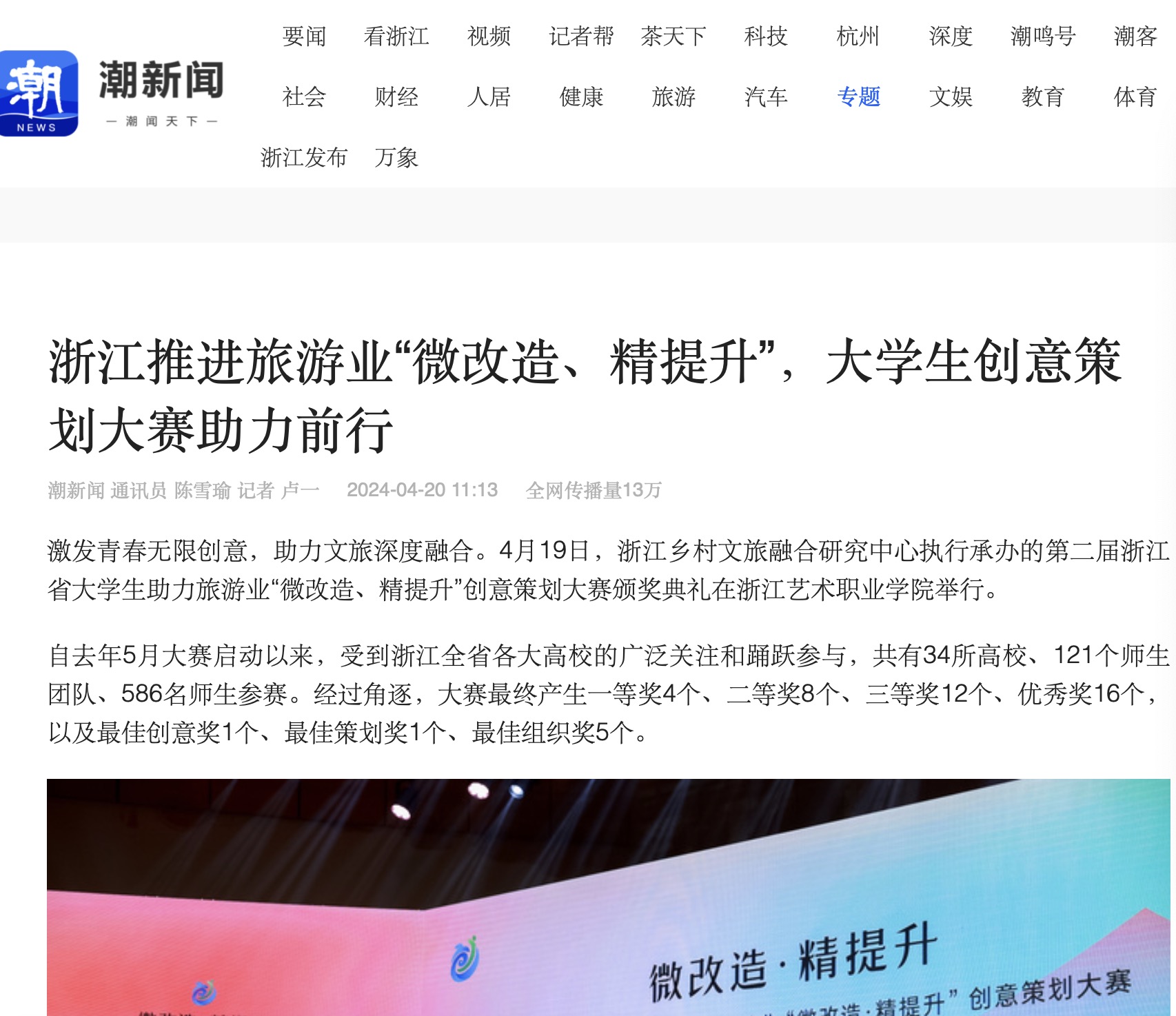 潮新闻:浙江推进旅游业“微改造、精提升”,大学生创意策划大赛助力前行
