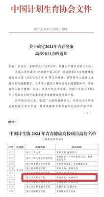 近日,中国计划生育协会发布《关于确定2024年青春健康高校项目点的通知》,经青春健康专家和青年代表的严格评审,由我校团委指导的青春健康志愿服务项目“青春你我,健康同行”从650所高校申报项目中脱颖而出,获得国家级立项。